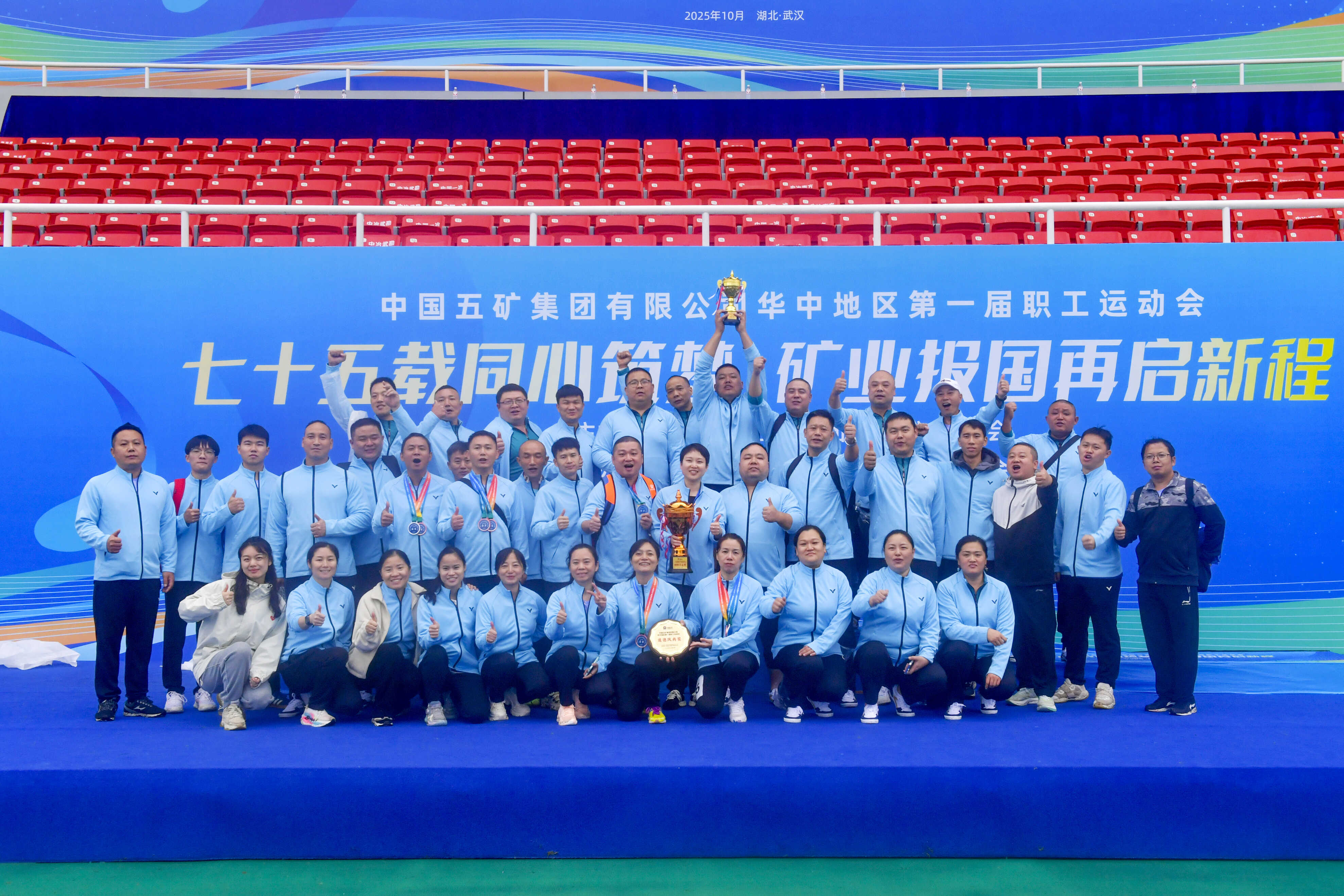 10月18日,中國五礦華中地區第一屆職工運動會在武漢圓滿舉行。來自中國五礦華中地區所屬企業的18支代表隊、1000余名運動員齊聚賽場,以體育競技踐行五礦精神、凝聚奮進力量,共同慶祝中國五礦成立75周年。由39名運動健兒組成的水口山有色代表團,用奮勇爭先點燃激情,用團結拼搏展示力量,最終以1金5銀6銅的優秀戰績,斬獲團體總分三等獎,并被賽事組委會授予“道德風尚獎”。